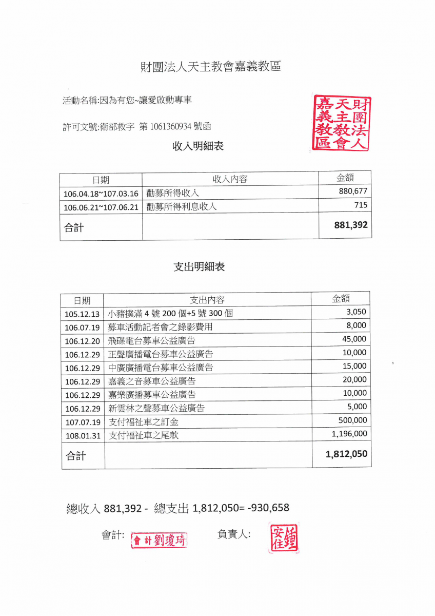 因為有您~讓愛啟動專車 收支報告 【2019-08-20】