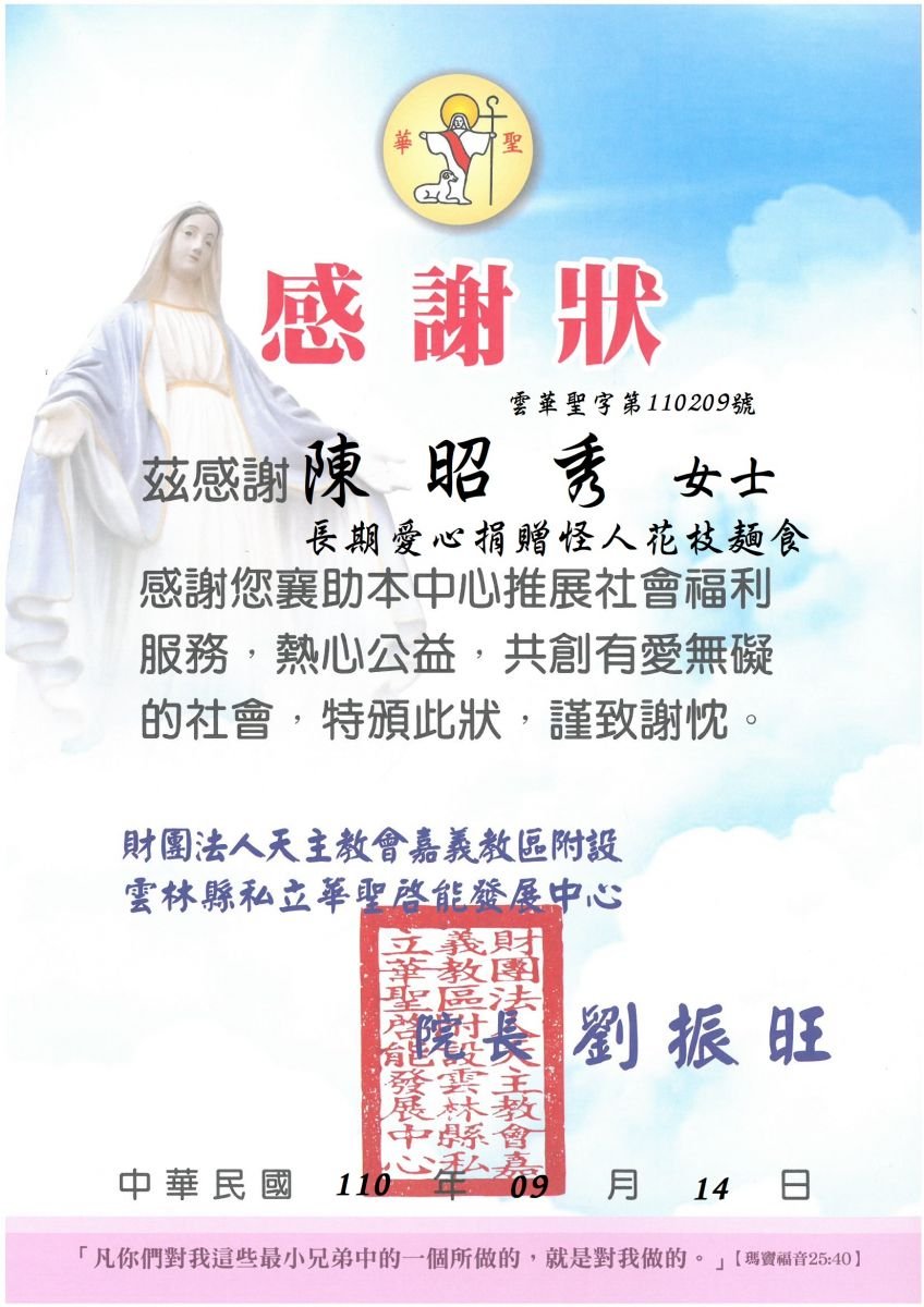 感謝 恩人 陳昭秀 女士 長期❤捐助怪人花枝麵 讓服務對象品嘗美味菜餚