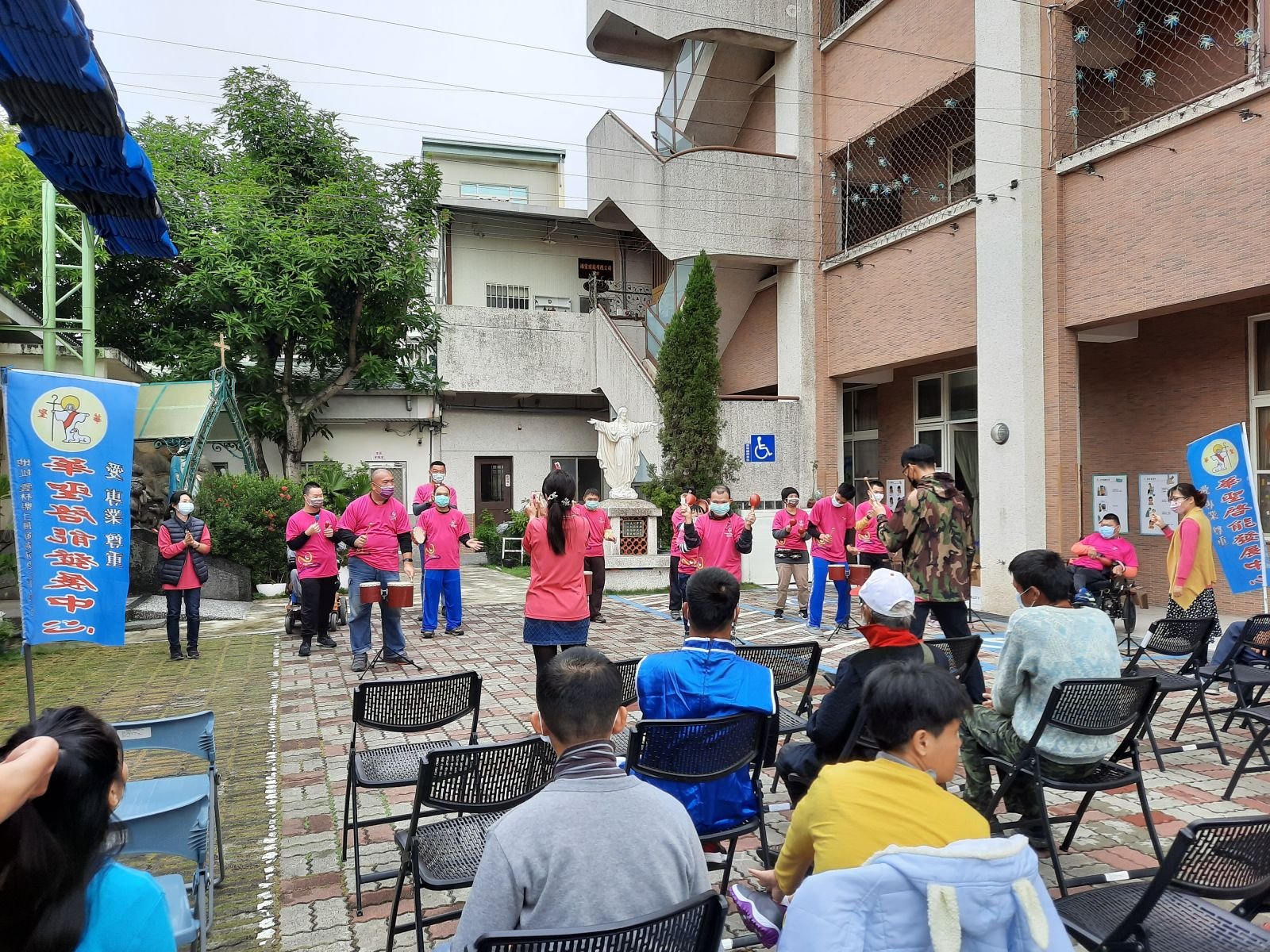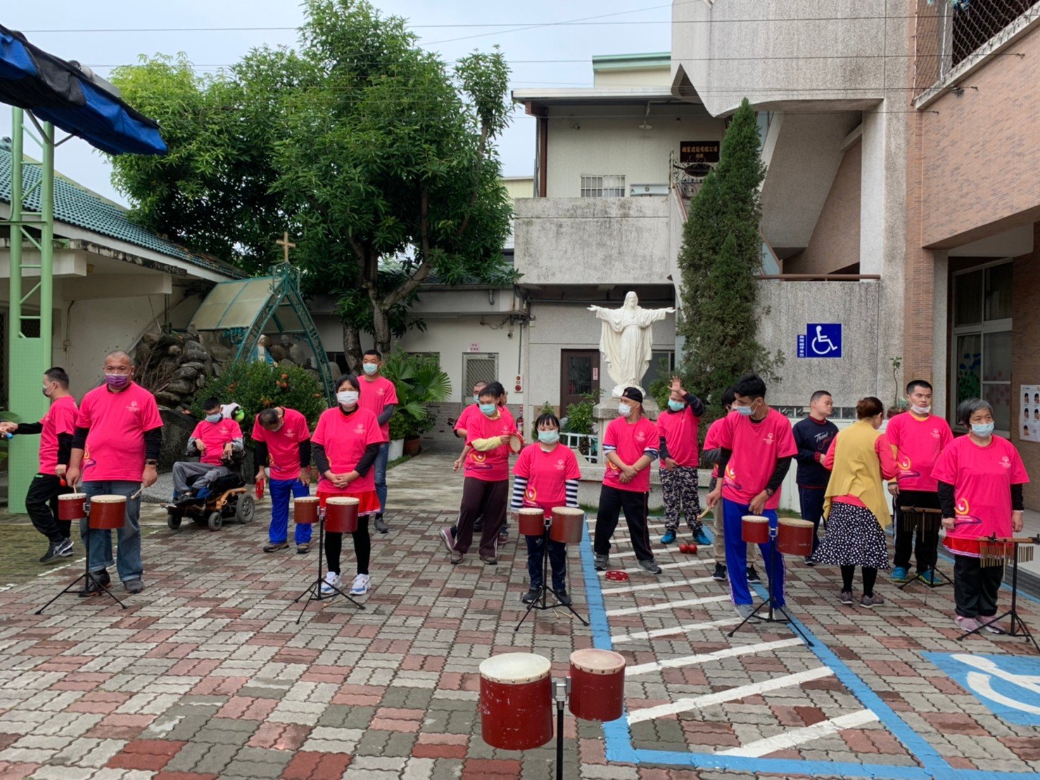 這次結合服務對象表演團成果發表會,有啦啦隊、中國鼓、奧福打擊樂、特奧韻律體操等表演