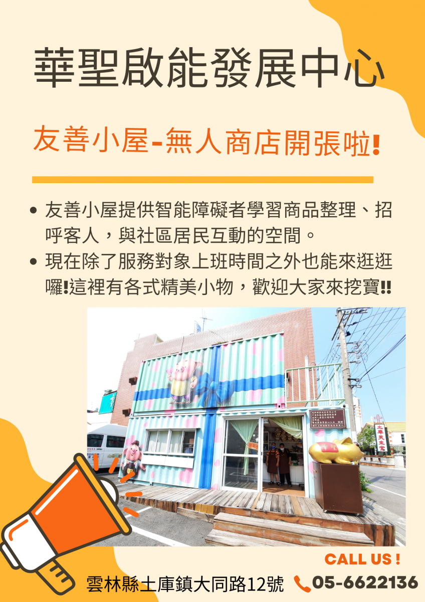 友善小屋將中心所收到二手/全新生活用品,經捐物人同意義賣,由中心服務對象整理商品、上架。友善小屋提供服務對象與社區居民互動的機會,藉由整理商品增進作業技能賺取作業獎勵金。