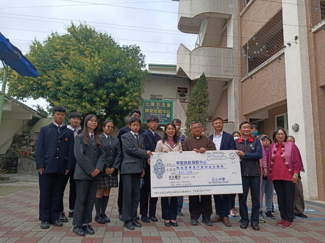 正心中學全體學生參與仁愛健行,用行動實踐耶穌愛人的真諦。捐出今年仁愛健行總捐款的75%給華聖啟能中心,用來協助成年智能障礙者照顧服務。