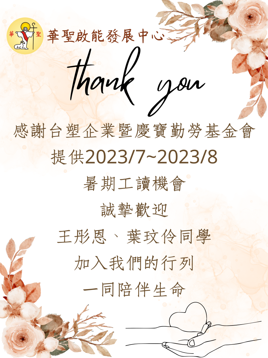 感謝台塑企業暨慶寶勤勞基金會提供暑期工讀生 【2023-07-27】