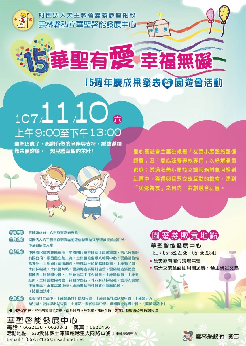 歡迎大家一同參加華聖15週年成果發表會暨園遊會活動!
