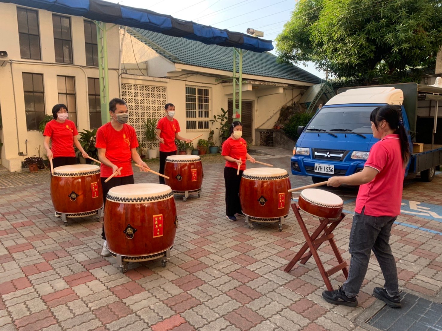 音樂是世界共通語言,學習打擊樂也是紓緩情緒活動。中國鼓隊成立至今已十年多了,為了讓服務對象們能接觸到更多不同的活動,特別於每週聘請專業的音樂指導老師,除了安排奧福音樂的課程教導外;中國鼓隊的成員們利用課餘的時間來練習中國鼓,經過無數次練習,才能將律動、節奏一一熟記並且站在舞台上表演。中國鼓及奧福打擊樂之外,還有另一支啦啦隊伍在老師的細心帶領下,服務對象賣力練習將走位及舞蹈動作熟記。三項表演團參加各項身心障礙者才藝表演、才藝競賽。中國鼓更榮獲了中部身心障礙者才藝表演團體組第一名及全國身心障礙者才藝團體組第三名的殊榮,在縣內時常受邀至各地擔任表演並獲得熱烈回響。